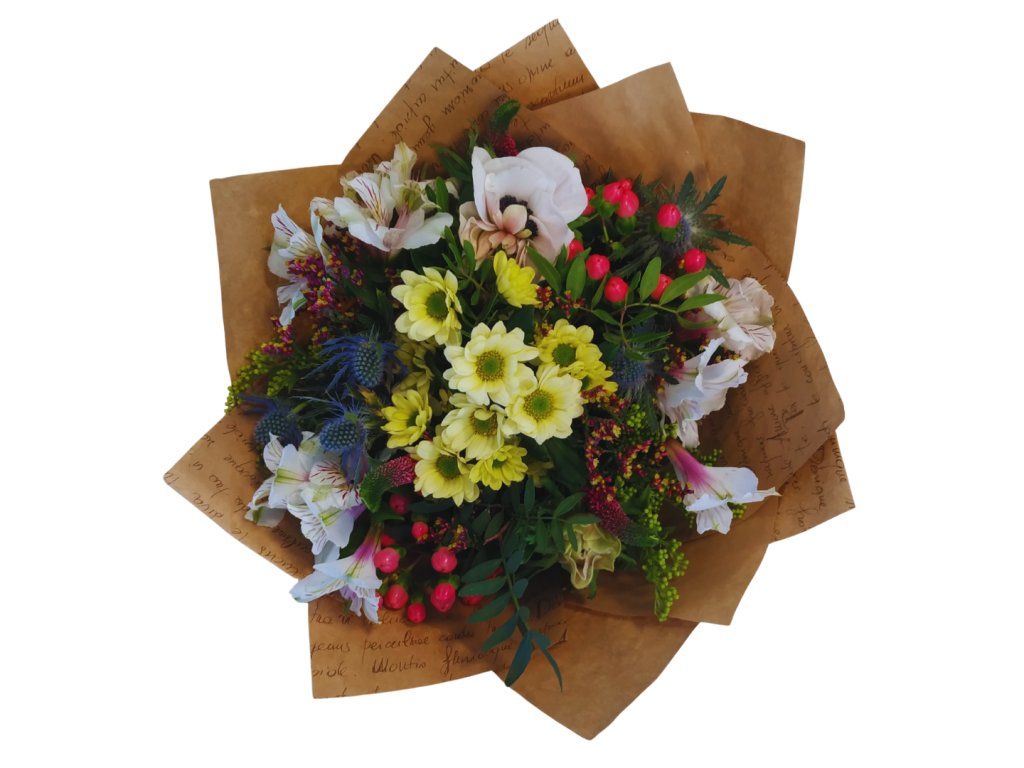 Nemáte zcela jasnou představu o tom, jak by měla kytice vypadat. Svěřte se do našich rukou a nechte to na nás. Připravíme pro vás krásnou barevnou kytici dle našeho nejlepšího vědomí a svědomí. Fotografie je pouze ilustrační, pracujeme vždy se sezónními a čerstvými květinami, skladba kytice se tedy může oproti obrázku lišit. Fotografie odpovídá střední velikosti.