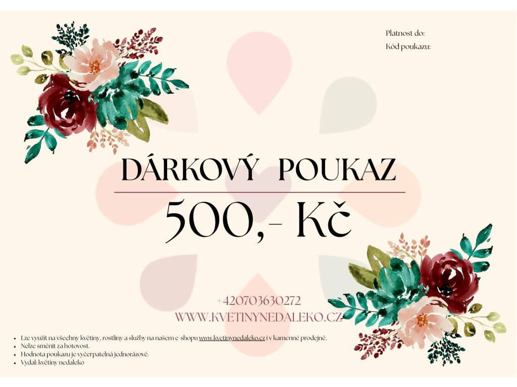 Dárkový poukaz v hodnotě 500,- Kč je ideální volbou pro všechny, kteří milují květiny, dekorace a radost z krásných věcí.