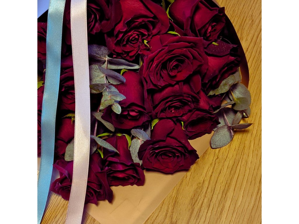 Pečlivě vybrané růže doplňuje jemná zeleň, která nechává vyniknout jejich barvu i tvar. Kytice je vázaná ručně s důrazem na jednoduchost a harmonii, aby vynikla krása samotných květů.